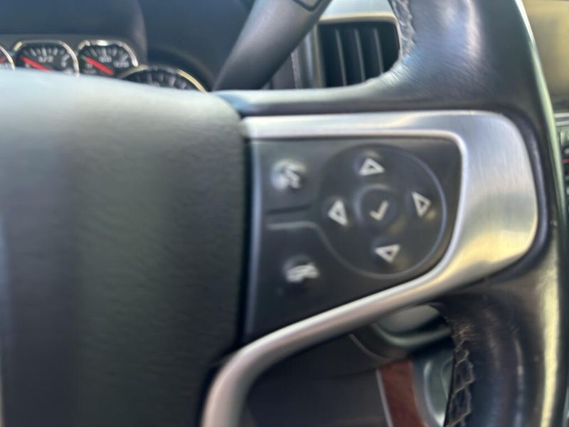 Never get into a cold vehicle again with the remote start feature on this 1 ton pickup. This 2015 GMC Sierra 3500 features a high end BOSE stereo system. See what's behind you with the back up camera on this model. The GMC Sierra features steering wheel audio controls. The GMC Sierra features a hands-free Bluetooth phone system. The GMC Sierra keeps you comfortable with Auto Climate. The state of the art park assist system will guide you easily into any spot. The leather seats in this GMC Sierra are a must for buyers looking for comfort, durability, and style. The installed navigation system will keep you on the right path. An off-road package is equipped on this GMC Sierra. This unit projects refinement with a racy metallic gray exterior. Keep safely connected while in this 2015 GMC Sierra 3500 with OnStar. You may enjoy services like Automatic Crash Response, Navigation, Roadside Assistance and Hands-Free Calling.